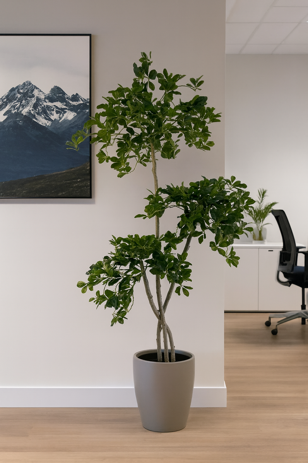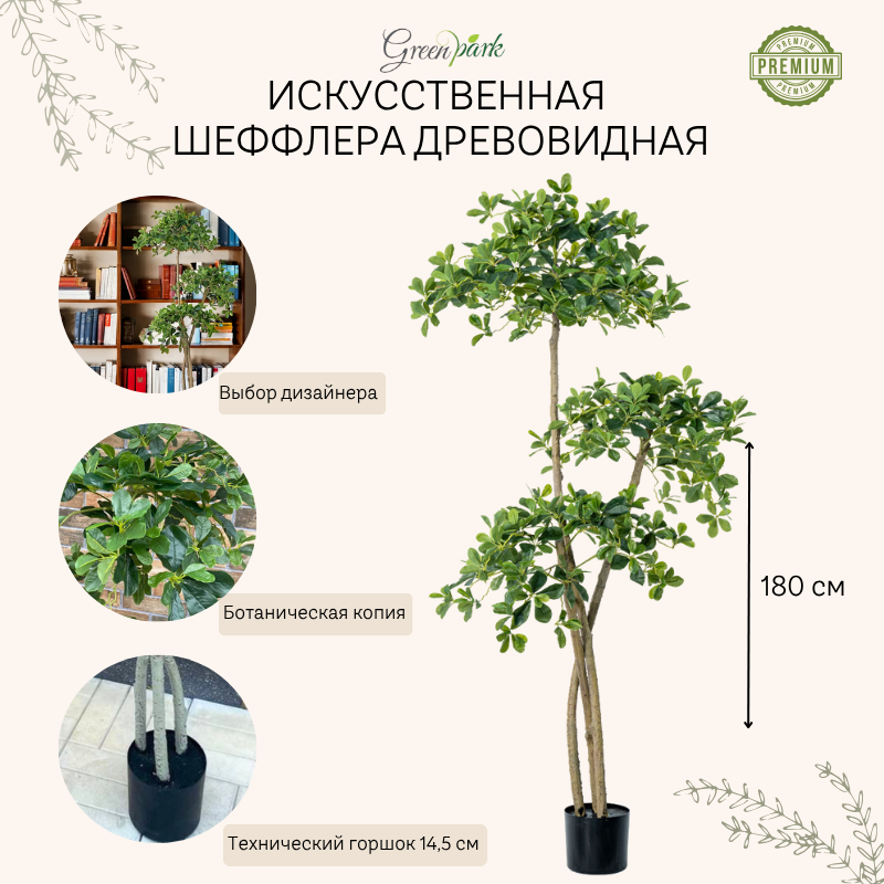 Добавьте в интерьер модный акцент с шеффлерой древовидной (Арборикола). Темные, изящные листья и натуралистичный ствол создают стильный и современный вид, добавляя пространству свежести и природной эстетики. Идеально для тех, кто ценит красоту зелени без сложного ухода. Долговечное, реалистичное и универсальное, оно станет изюминкой вашего дома, офиса или кафе. С искусственной шеффлерой ваш интерьер станет еще уютнее и современнее!