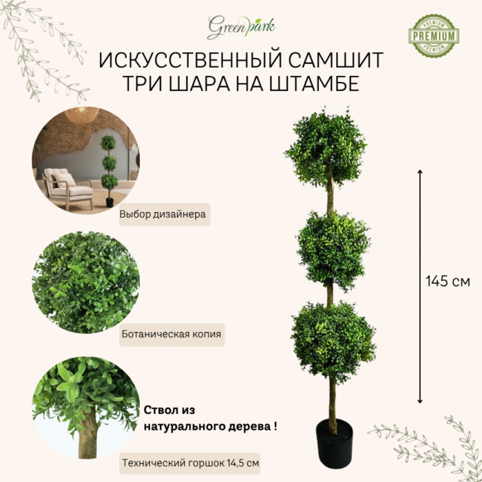 Добавьте в интерьер модный акцент с искусственными самшитами в форме шаров. Аккуратная, геометрически совершенная форма и сочные зеленые листья создают стильный и современный вид, добавляя пространству свежести и природной эстетики. Идеально для тех, кто ценит красоту зелени без сложного ухода. Долговечное, реалистичное и универсальное, оно станет изюминкой вашего дома, офиса или кафе. С самшитовым деревом ваш интерьер станет еще уютнее и современнее!